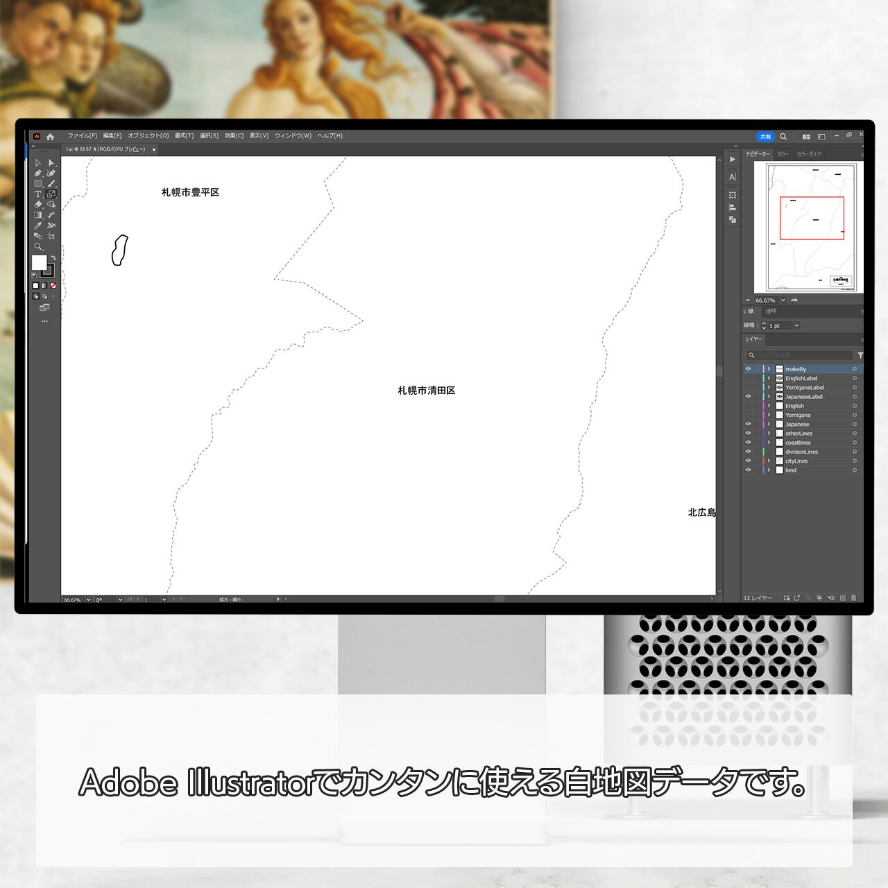 札幌市清田区の再編集可能な白地図データです。Illustratorで自由に再編集可能です。