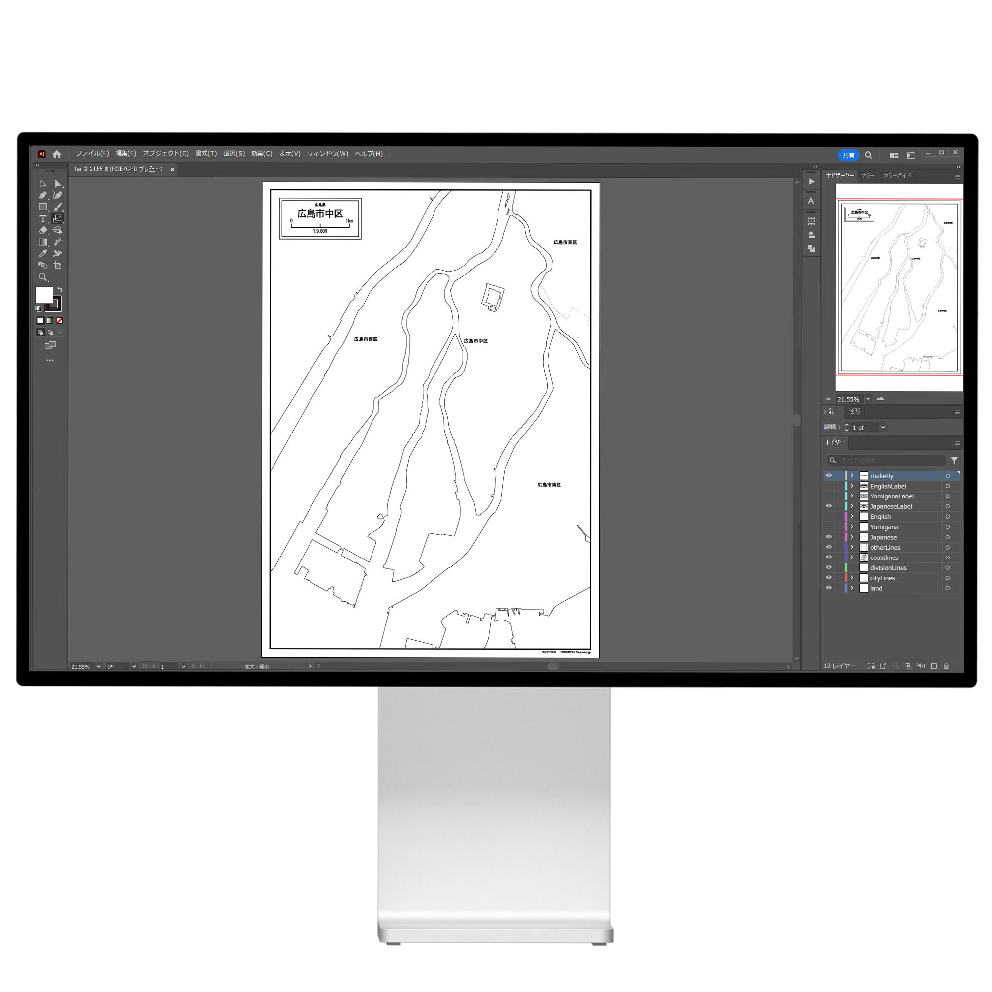広島市中区の白地図データです。Illustratorで自由に再編集可能です。
