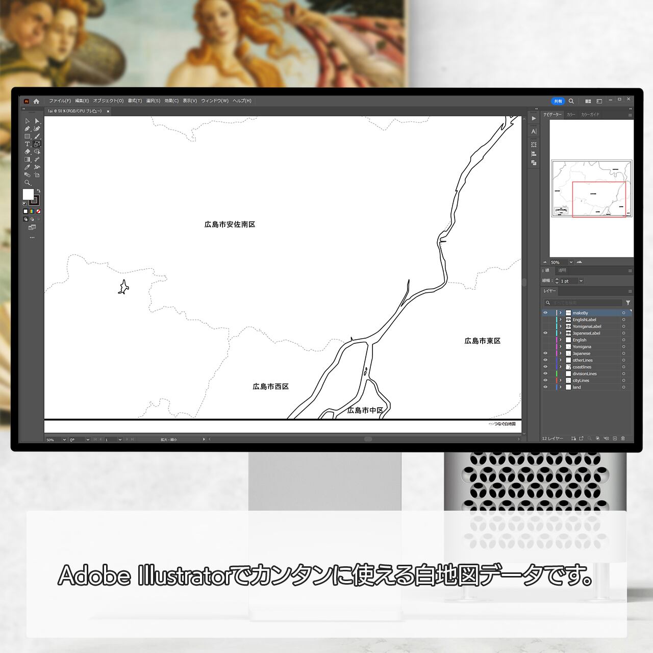 広島市安佐南区の白地図データです。Illustratorで自由に再編集可能です。