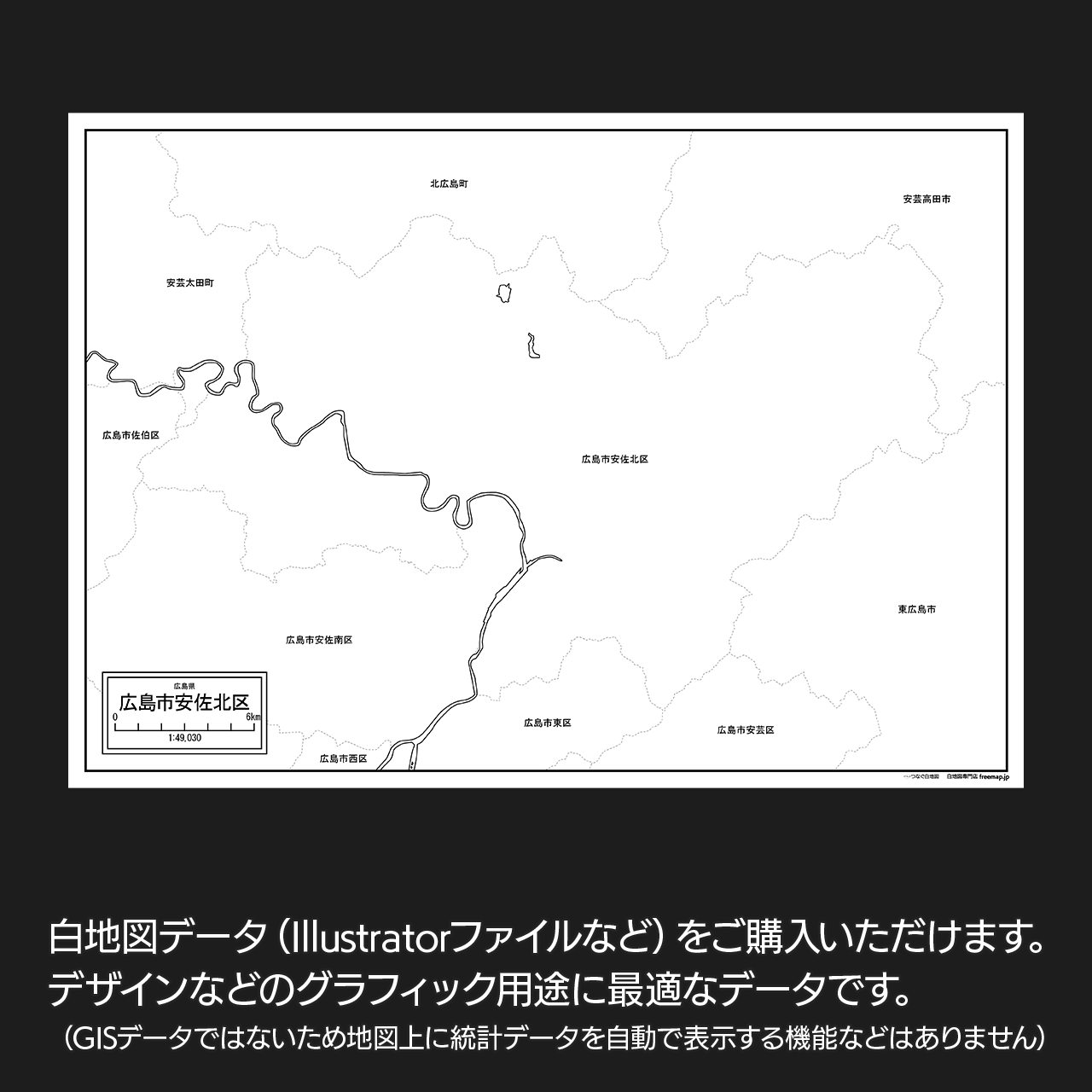 広島市安佐北区の白地図データです。Illustratorで自由に再編集可能です。