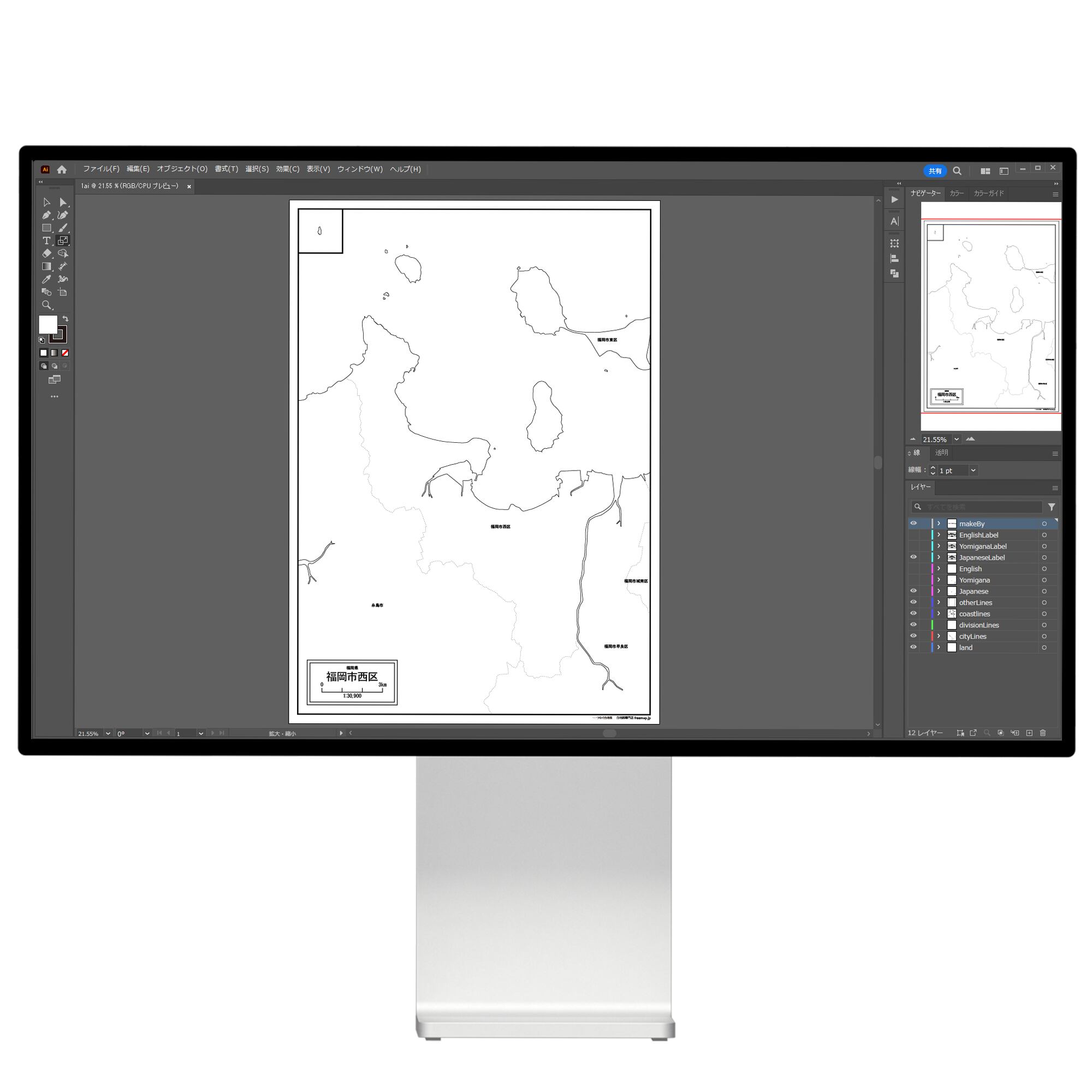 福岡市西区の白地図(Aiファイル)