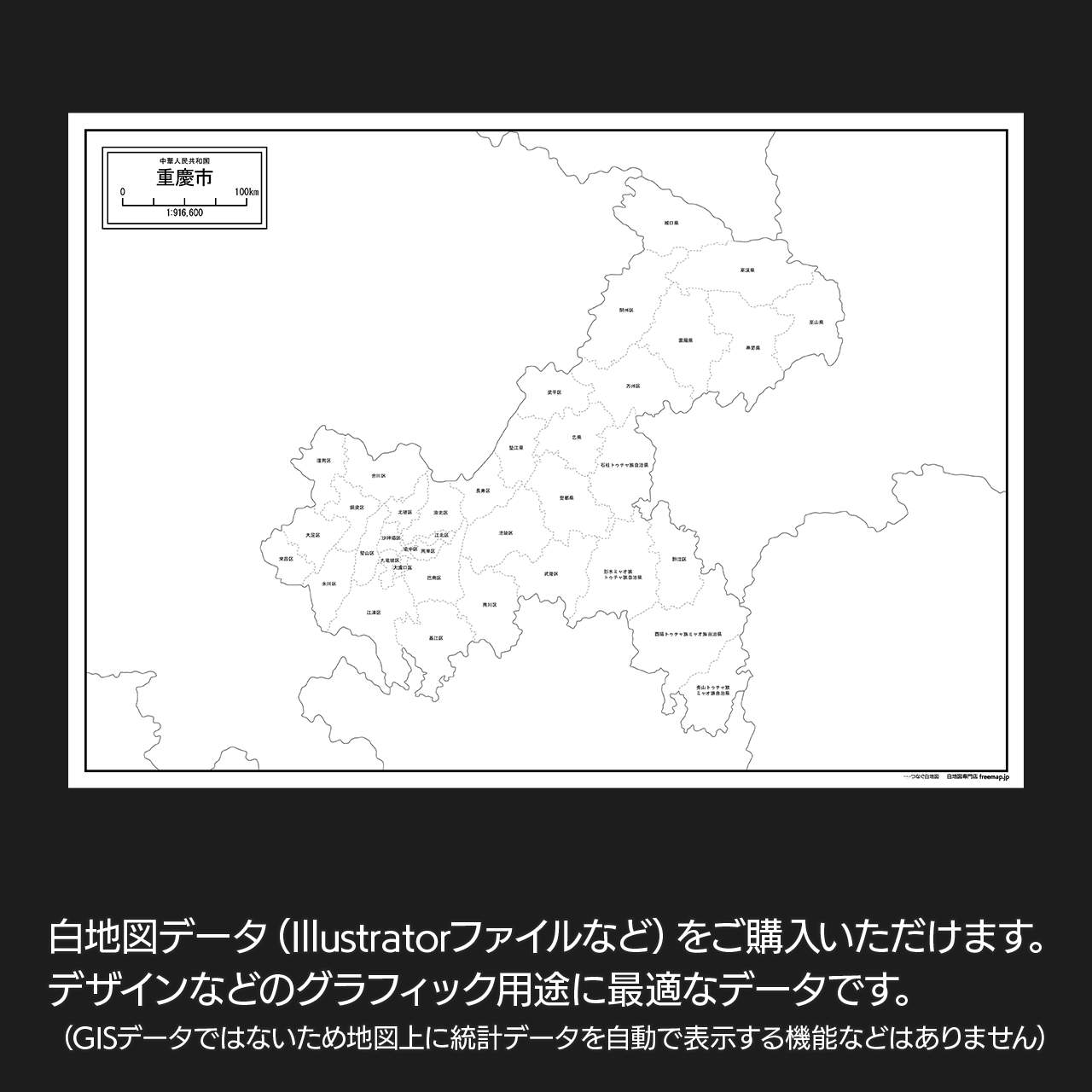 中華人民共和国(中国)の重慶市の白地図データです。Illustratorで自由に再編集可能です。