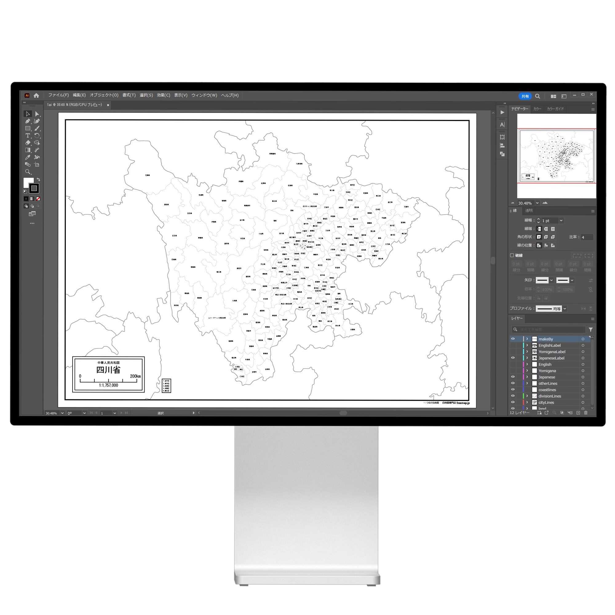 四川省の白地図データ(Aiデータ)