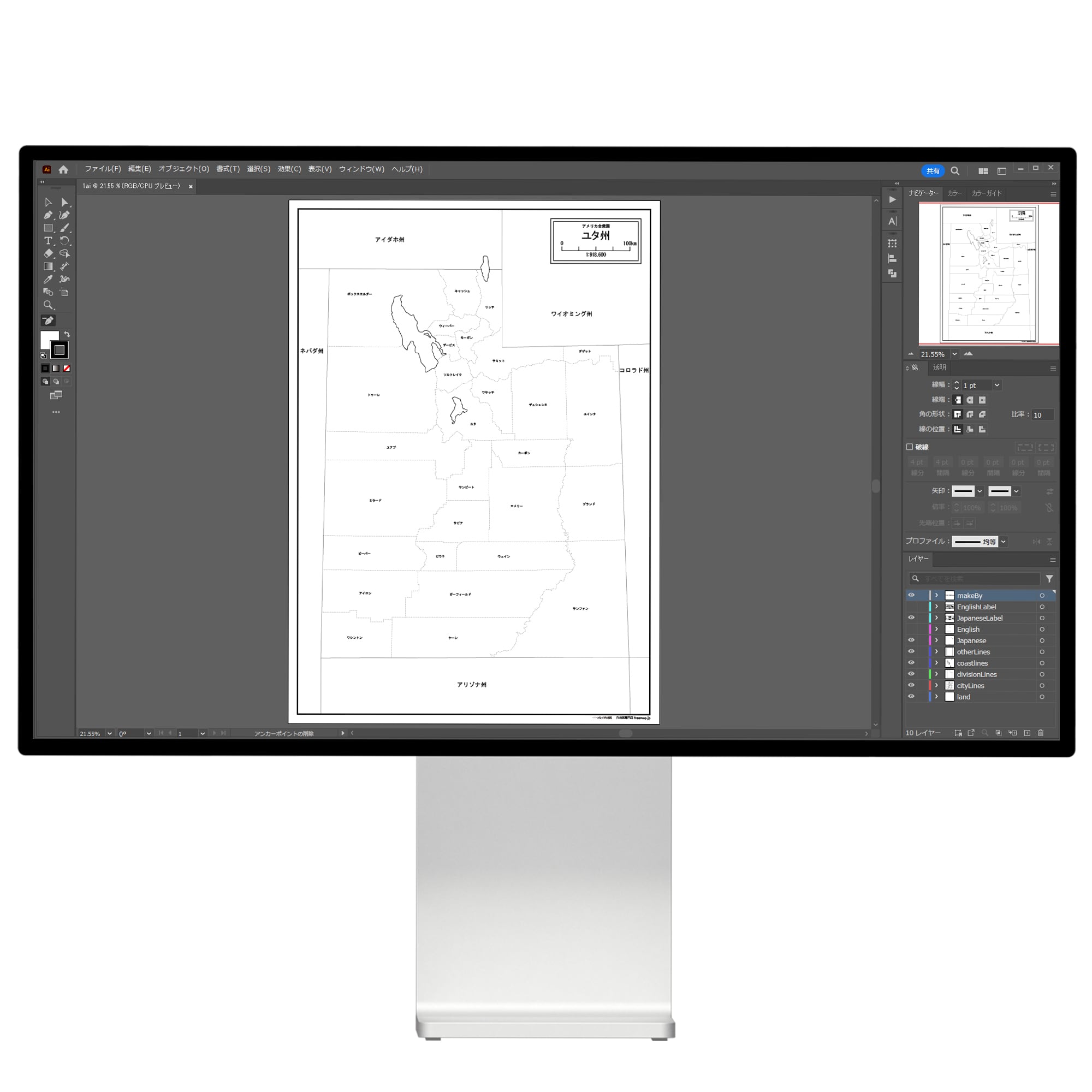 アメリカ合衆国(USA)のユタ州の白地図データです。