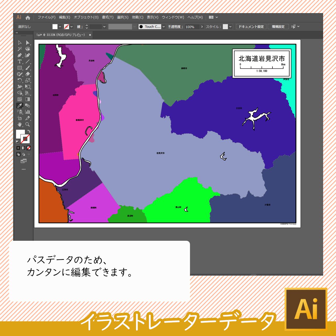 Illustratorで自由に再編集可能な白地図です。書籍・出版物・レポート・ウェブサイト・スマホアプリ・TV等の映像作品など、様々な用途にご利用いただけます。
