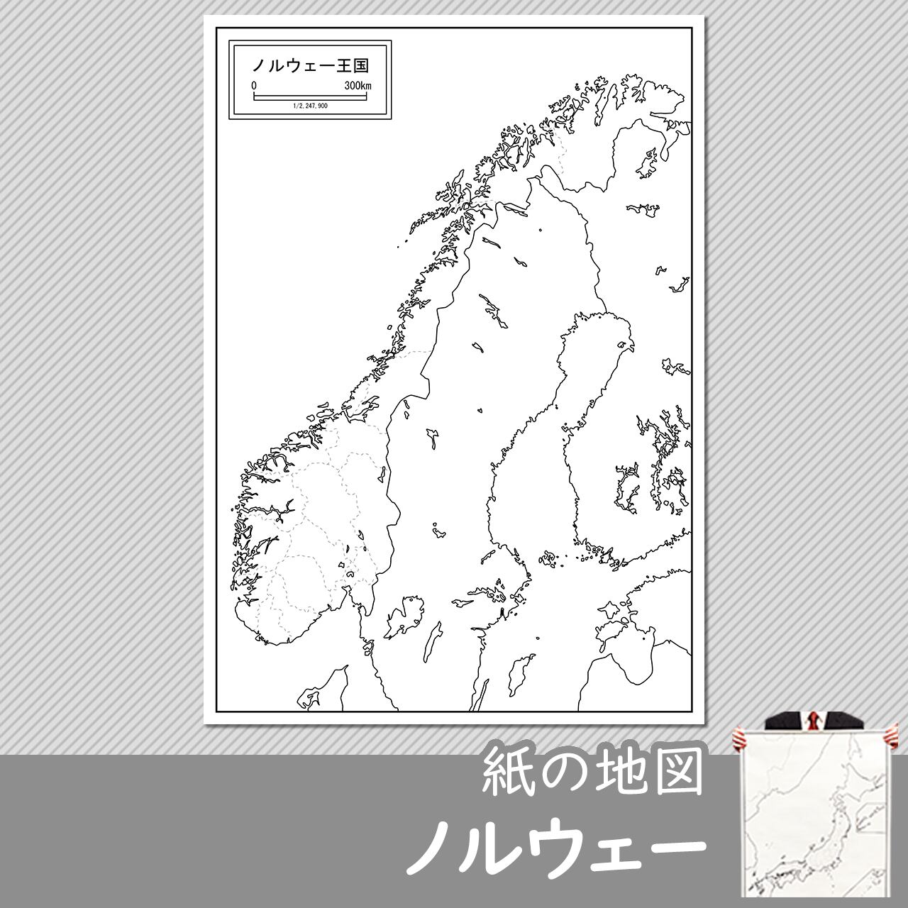 ノルウェーの海岸線と境界線を紙に印刷した白地図です。