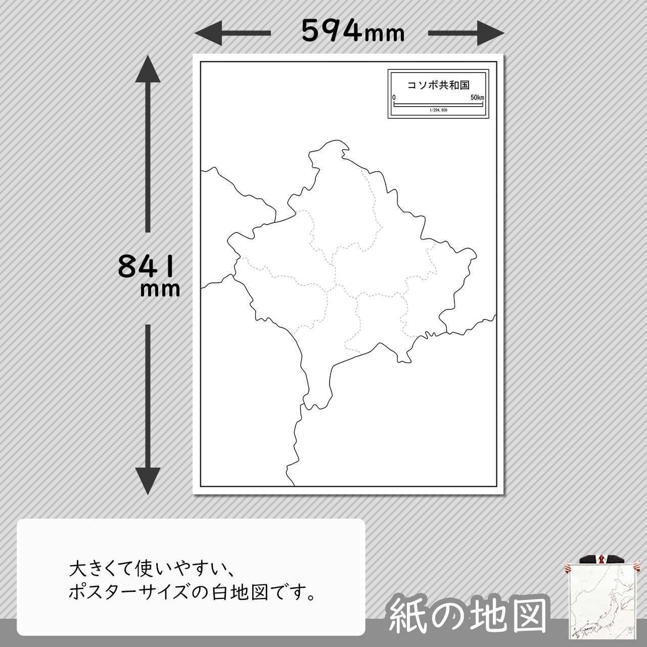 コソボの海岸線と境界線を紙に印刷した白地図です。