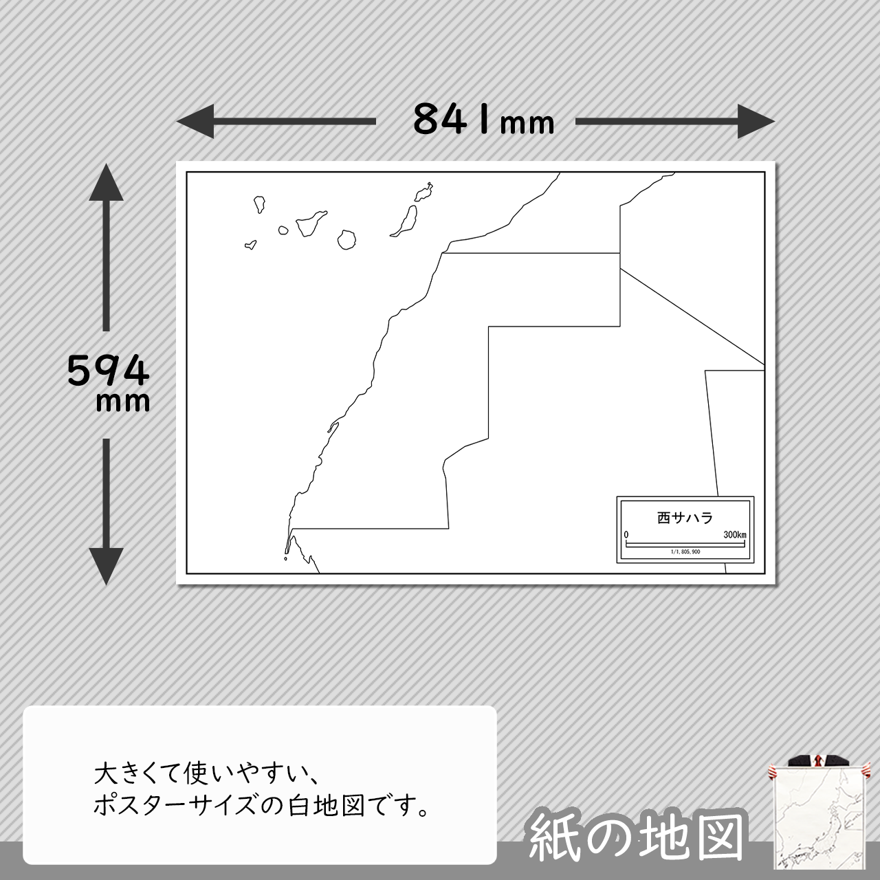 西サハラの海岸線と境界線を紙に印刷した白地図です。