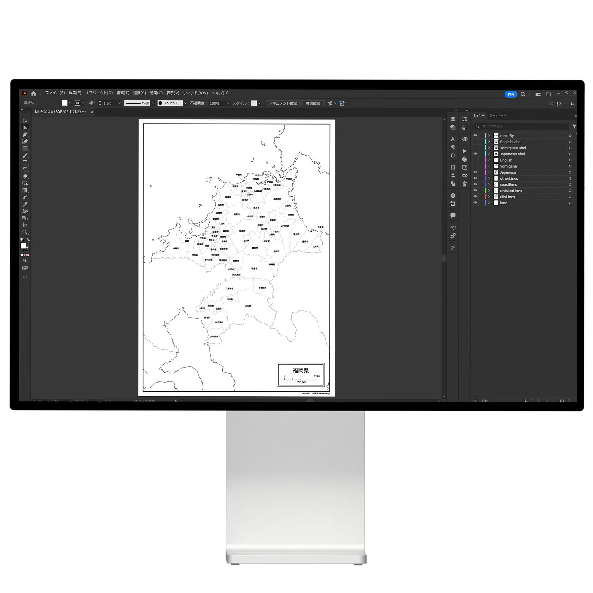 Illustratorで自由に再編集可能な福岡県の白地図です。